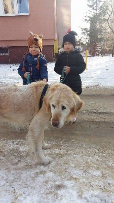 Zabrałam ze sobą 10letnią siostrę i już mogę śmiało stwierdzić, że Armek na pewno nie ma problemu z dziećmi. Od razu wylizał jej ręce i na spacerze też był bardziej zainteresowany małą istotą niż mną :-)