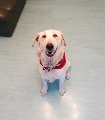 Dzień dobry wszystkim. Witamy się jako nowi opiekunowie Larego. Lary jest z nami dopiero od wczoraj, więc dopiero się zapoznajemy, ale od pierwszego spojrzenia widać, że jest to bardzo wesoły pies, który uwielbia ludzi.