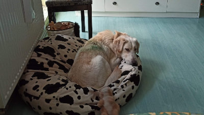 1,5 dnia było bardzo dobre - i to pewnie uśpiło naszą czujność. Wczoraj i w nocy łącznie Lary zrobił siku 3 razy w domu. Dwa razy w ciągu dnia- za pierwszym razem był zaniepokojony po tym jak Bartek wyszedł z domu - kręcił się, piszczał, aż w końcu zrobił siku - rozmawiałam z Kasią na ten temat, że może to kręcenie się miało nie tylko podłoże zdenerwowania, że ktoś wyszedł z domu, ale właśnie też potrzeby fizjologicznej. Drugi raz zrobił siku pod wieczór, gdy też był mocno podekscytowany. No i potem trzeci raz w zasadzie nad ranem niestety. O ie w dzień będę go teraz baczniej obserwować, tak nie do końca wiem, co robić w nocy - o ile od poniedziałku, kiedy dostał zastrzyk na swędzenie zdecydowanie lepiej przesypia noc, ale i tak zwykle wstaje raz czy dwa (przynajmniej na tyle razy się budzę).