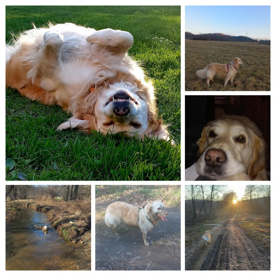 Wcześniej sunia na spacery poza posesję nie chodziła, więc musimy najpierw opanować chodzenie na smyczy i też sygnalizowanie wyjścia za potrzebą ,bo z tym różnie bywa..