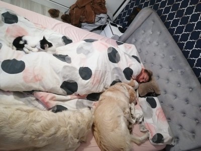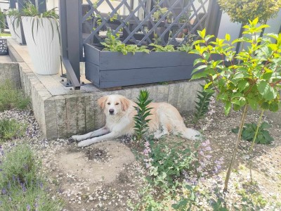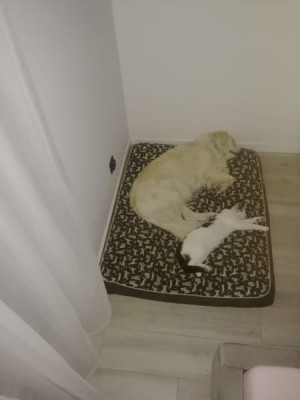 Nasz podopieczny zamieszkał z Panią Anią i jej córką oraz rezydentką goldenką w okolicach Zielonej Góry.