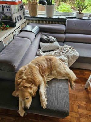 To już półtora tygodnia jak Abi jest u nas. Początkowo wszędzie chodziła za nami i piszczała nawet jak szliśmy dosłownie na chwilę do łazienki. Teraz tylko kontrolnie jedno oko otworzy albo głowę podniesie, żeby sprawdzić gdzie idziemy 😀 Abi w domu jest istnym aniołkiem, tylko leży i śpi. Dosłownie jakby jej nie było. Czasami przyjdzie na głaski, a jak przestajemy głaskać to uroczo trąca nas noskiem 🙂 ale nie jest natarczywa, wystarczy, że odkręcimy wzrok w druga stronę, albo weźmiemy coś do ręki i wtedy idzie sobie poleżeć 😊 co noc zostaje sama na dole i do tej pory 2 razy została sama w domu (raz na pół h i dziś na 3h) - nic nie spsociła 🙂 zawsze cieszy i ekscytuje się na nasz widok, natomiast jak ją w domu nieraz zawołam to przychodzi ze spuszczoną główką i smutnymi oczami..