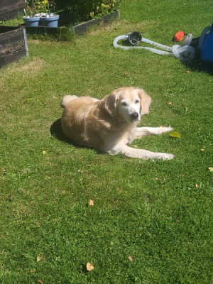 Abi to niesamowicie radosna sunia, kontaktowa, wychowywała się w domu z dziećmi, jest bardzo przyjacielska ale ... to też wulkan energii. Ciągnie na smyczy a obroża stale podrażniała jej szyję. Dodatkowe podrażnienie wywołało foresto... i tak musieliśmy ogolić szyje Abi dookoła żeby wygoić podrażnienia.