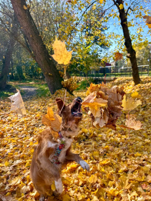 Nasz maluch ma spory apetyt więc można go przez smakołyki namówić do wielu zadań przede wszystkim przywołania (choć jeszcze nie wypuszczamy się na otwartej przestrzeni bez linki).