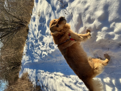 Pięknie reaguje na podstawowe komendy i chętnie uczy się nowych. W ogrodzie reaguje już na przywoływanie oraz jest skory do wymiany piłeczki na smaczka
