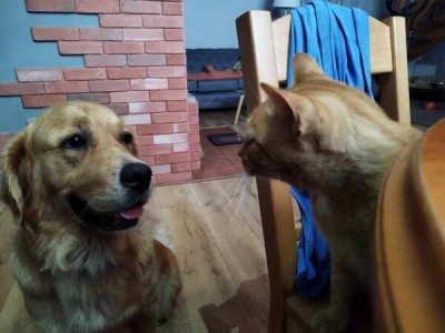 Alena wykazuję problem z kotami - bardzo żywiołowo na nie reaguję. Obecnie waży około 26 kg a badania krwi w normie. Apetyt jej dopisuje tak bardzo, że została zakupiona dla niej miska spowalniająca bo je zbyt łapczywie. Oczka i uszka leczymy. Przy zabiegach jest nieco niecierpliwa, w ogóle to jest mega żywa.
