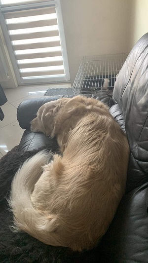 Dotychczas podobno był bardziej psem podwórkowym niż domowym ale.. przez pierwsze dni w nowym DT u Joanny i Przemka nie chciał wychodzić na dwór obawiając się, że już go tam zostawią.