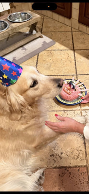 Pestusia skończyła 6 lat i ma się bardzo dobrze. Codziennie spaceruje po lesie, gdzie dużo węszy. Jest bardzo wesołym i przyjaznym psem. W najbliższym czasie mamy zamiar zrobić profilaktyczne badania u weterynarza, o czym poinformujemy. Poza tym Pestka kocha zabawę i mizianie jak każdy prawdziwy Golden. Oczywiście wybieramy się do Dębek na zjazd.