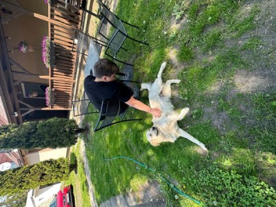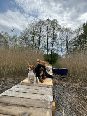 Obecnie chłopak polubił wyjazdy (udziela mu się entuzjazm innych psiaków). Szczególnie uwielbia wycieczki do domku na Kaszubach 😉