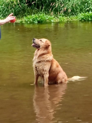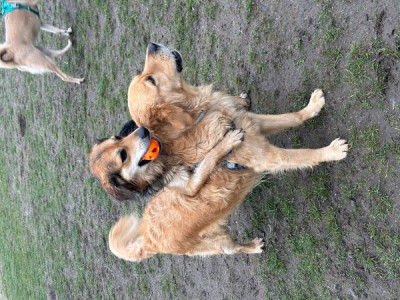 Dorosły Fado to samiec alfa, kastrat :P - jest statecznym goldenem, ALE nadal z temperamentem, nie pozwala sobie na kontakty z każdym psem, a szczególnie z nachalnym. Wyraźnie stawia granice swojej przestrzeni, ale także szanuje granice innych psów. Coś czego się musiał na uczyć to "czytanie sygnałów".