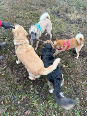 Jeżeli chodzi o relację z innymi psiakami to obecnie Fado ma wiele okazji do ,nauki' psiej komunikacji. Coraz więcej psów jest dla niego obojętna.