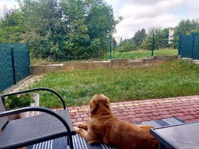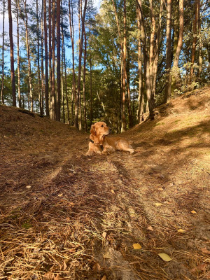 "Wszystko u Niego dobrze, przytula się cały czas 😃 całkiem nieźle już radzi sobie na spacerach, próbujemy go socjalizować z psami, które znamy i muszę przyznać, że już coraz mniej lęku u Niego widać gdy napotyka inne psy na swojej drodze 🙂"