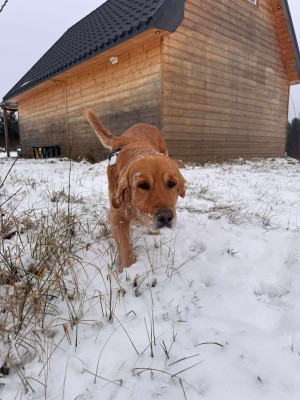 Ten piękny rudzielec nie od razu znalazł swojego człowieka, ale los sprawił mu piękną niespodziankę w postaci Gosi, która zgłosiła chęć przyjęcia go pod opiekę niemal w ostatniej chwili przed wyjazdem właścicielki Knufelsa. Wraz z synem sama pojechała po naszego podopiecznego a on od razu pozytywnie na nich zareagował.