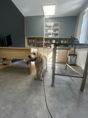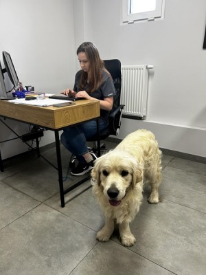 Nasz chłopak był w tym tygodniu na kontrolnym badaniu krwi. W gabinecie zachowywał się bardzo ładnie i dal sobie bez problemu przeprowadzić badanie. Parametry tarczycowe dalej spadają, pomimo stosowania preparatu na bazie alg, więc trzeba będzie u niego włączyć standardowe leczenie Forthyronem żeby ustabilizować hormony.