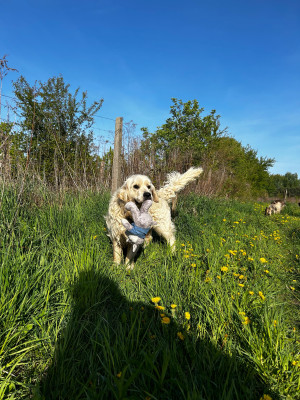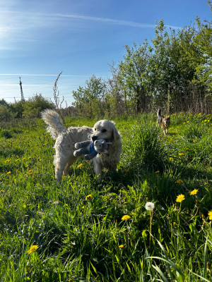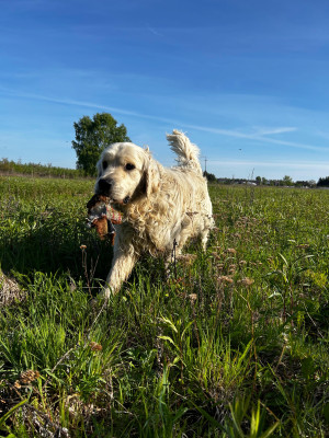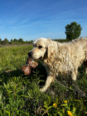 Często uczestniczy w spacerach wyjazdowych, podczas których uczy się odnajdować w różnych nowych sytuacjach i w towarzystwie nowych psów.