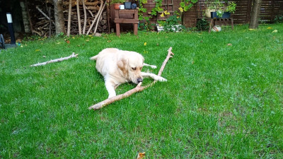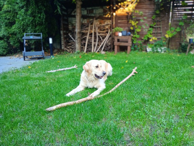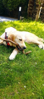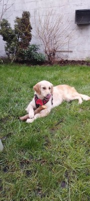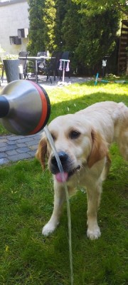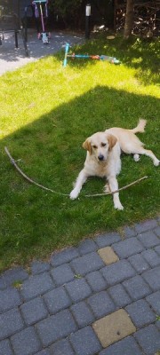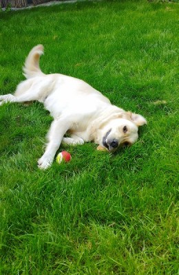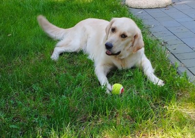Na dzień dzisiejszy nie mamy z nią problemów. Ładnie zostaje w domu, zachowuje czystość, jest chętna do zabawy, ma dużo energii. W lipcu byliśmy wszyscy w Mrągowie na wakacjach. Kąpała się w jeziorze, hasała razem z kolegą labradorem po ogrodzonej działce.
