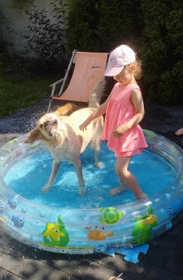 Ellie aktywnie spędza wakacje, kopiąc pokaźne doły w ogrodzie i ciesząc się wygłupami w dmuchanym basenie. Woda to jej żywioł, nie odpuści gdy ktoś trzyma wąż do polewania roślin