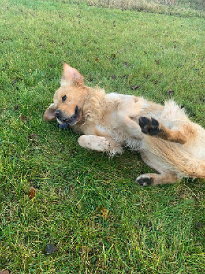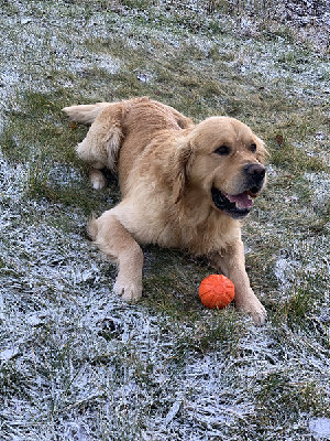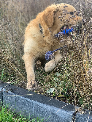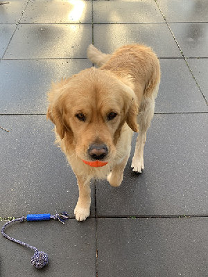 Pięknie reaguje na podstawowe komendy i chętnie uczy się nowych. W ogrodzie reaguje już na przywoływanie oraz jest skory do wymiany piłeczki na smaczka :D