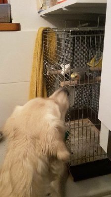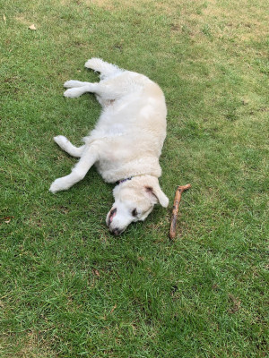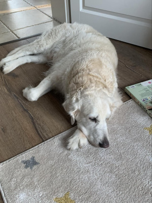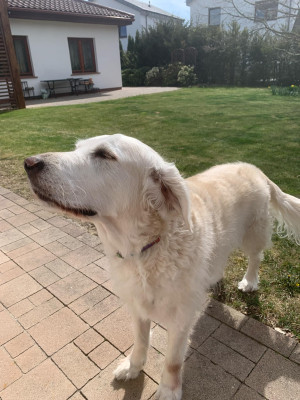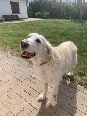 Karat ma do dyspozycji ogromny ogród i las na długie spacery za płotem. Ale i tak nie lubi odstępować nas na krok, nie zostanie nigdy sam na dworze bo musi pilnować stada w domu. Trudno mu podarować tyle miłości ile potrzebuje, bo w tym zakresie jego potrzeby są niewyczerpane. Jak i potrzeby nieustannego jedzenia - jak to u złotek. To prawdziwie warzywny pies. Łatwiej przy nim zjeść mięso niż marchewkę czy ogórka. Jest też niezwykłym gadułą:-)