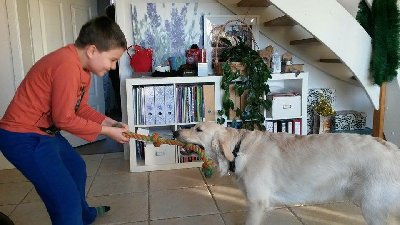 Jesteśmy bardzo wdzięczni Fundacji, że dała nam takiego wspaniałego przyjaciela, najlepszego:) Szczególnie dla naszego syna, który jest jedynakiem i dzięki Karatowi wychodzi z domu i uczy się opieki nad innymi. Jest też moim rehabilitantem, bo ze względu na chory kręgosłup muszę dużo spacerować. A Karat na długie spacery nigdy nie narzeka!