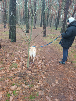 Sama też nie chciała brać go na smycz poza podwórko, dlatego pochodziła z nim trochę na smyczy po podwórku i tutaj już chodził przy niej ładnie, przychodził zawołany itp.