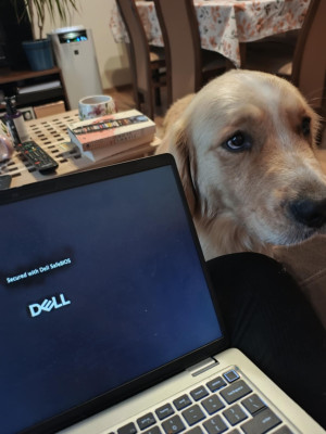 Wczoraj wieczorem Frodo znowu zsikał się w domu, znowu ciężko powiedzieć dlaczego konkretnie - nie dawał żadnych sygnałów, że chce mu się siku, a sygnały ogólnie dawać umie. Teraz jesteśmy sami na cały weekend i wczoraj, gdy nie mógł do mnie przyjść, bo bał się paneli, to szczekał w moją stronę, dopóki nie zwróciłem uwagi, a potem kontynuował, dopóki mu nie pomogłem. Także wydaje mi się, że nie było to związane z pilną potrzebą, tylko próbuje coś tym zakomunikować. Ale znowu, ciężko powiedzieć, co konkretnie.
