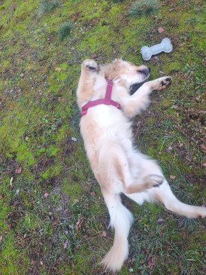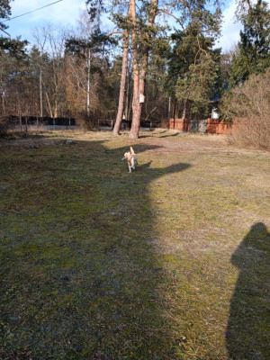 Frodo ewidentnie jest zainteresowany terenem za domem, który niestety nie jest zbyt zadbany, więc nie chcemy, żeby tam chodził. Od czasu do czasu tam podbiega i wtedy słabo reaguje na zawołania - dużo ma tam do powąchania, są z tyłu za ogrodzeniem 2 psy sąsiada, więc pewnie dlatego. Staramy się nad tym pracować, żeby mimo tylu nowych rzeczy reagował szybciej, z mniejszym lub większym powodzeniem.