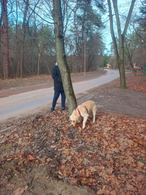Dzisiaj znowu jestem z nim sam, więc jest dosyć spokojnie. Na spacerach było wszystko ok, dzisiaj sam zabrałem go na smyczy poza podwórko i chodził bardzo ładnie na smyczy. Zgodnie z sugestią pani Asi dałem mu trochę więcej czasu na swobodne poznawanie okolicy i zapachów i rzadziej go do siebie wołać - chyba to podziałało, bo trochę powąchał i sam do mnie przychodził, więc faktycznie było to dla niego bardziej komfortowe. Dziękujemy za radę!